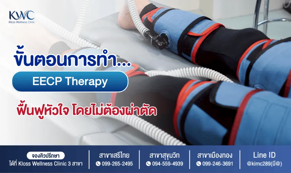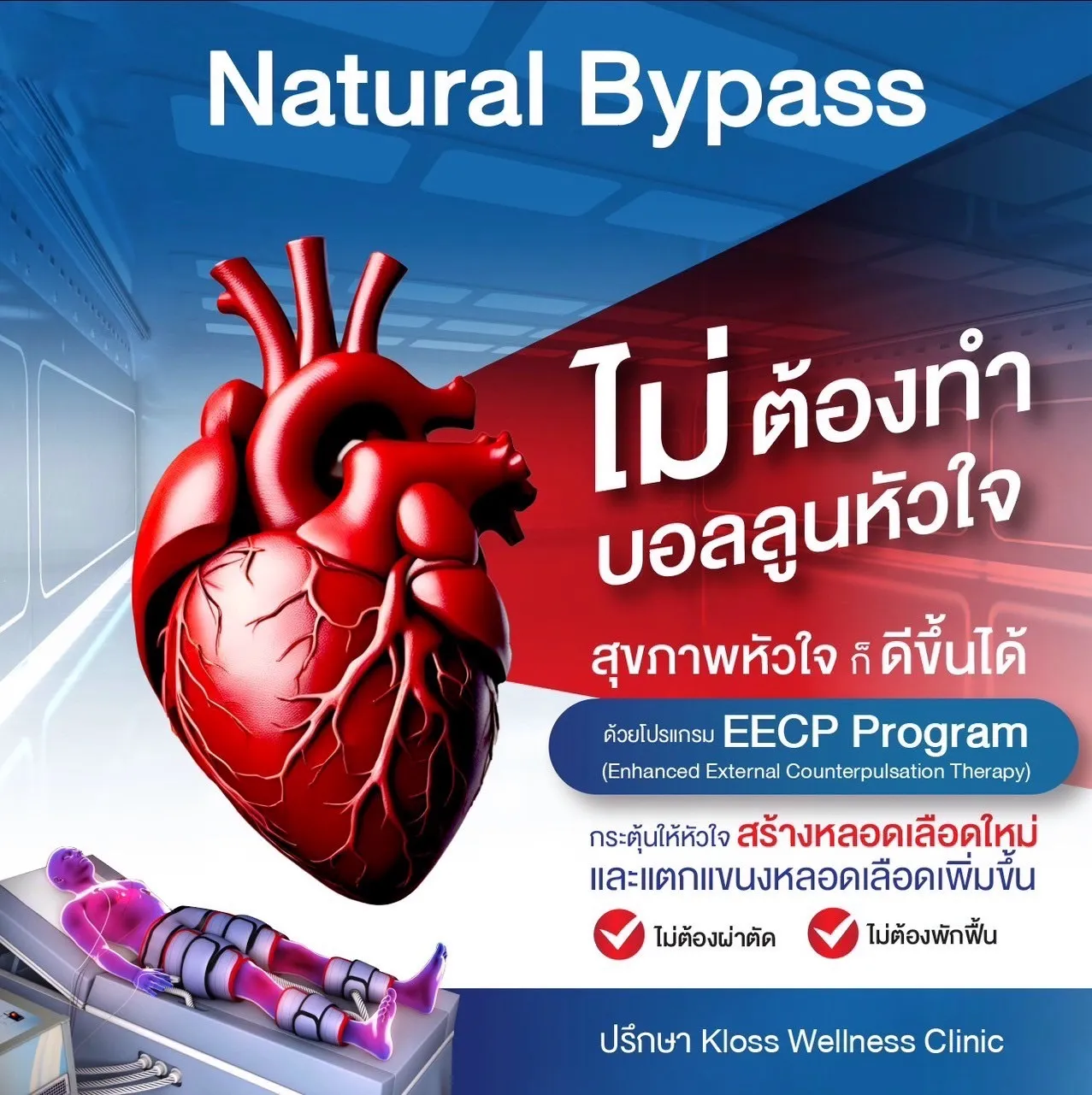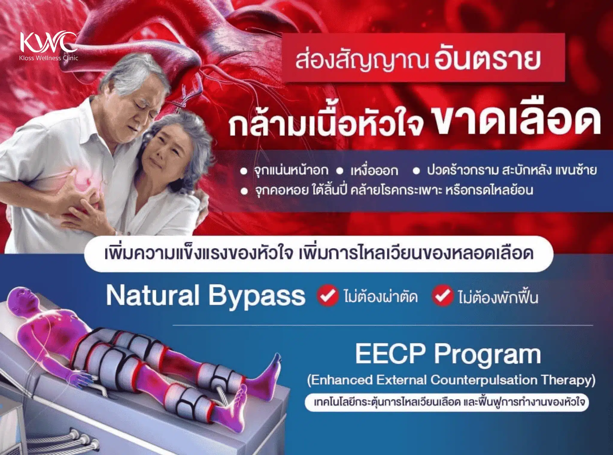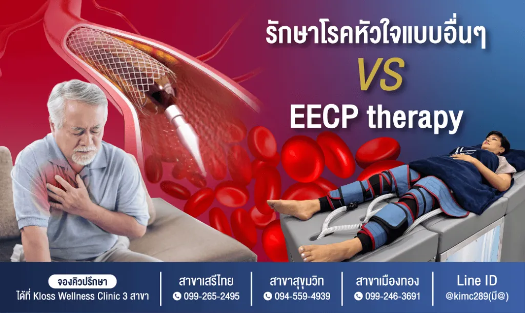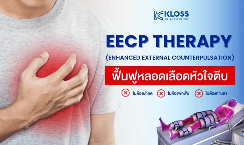 ที่ Kloss Wellness Clinic แนะนำ การดูแลสุขภาพหัวใจและหลอดเลือดด้วย โปรแกรม EECP Therapy (Enhanced External Counterpulsation) เทคโนโลยีฟื้นฟูหัวใจและกระตุ้นการไหลเวียนโลหิต ช่วยกระตุ้นการสร้างหลอดเลือดใหม่ (Natural Bypass) เพิ่มปริมาณออกซิเจนในหลอดเลือด และลดความเสี่ยงโรคหัวใจ