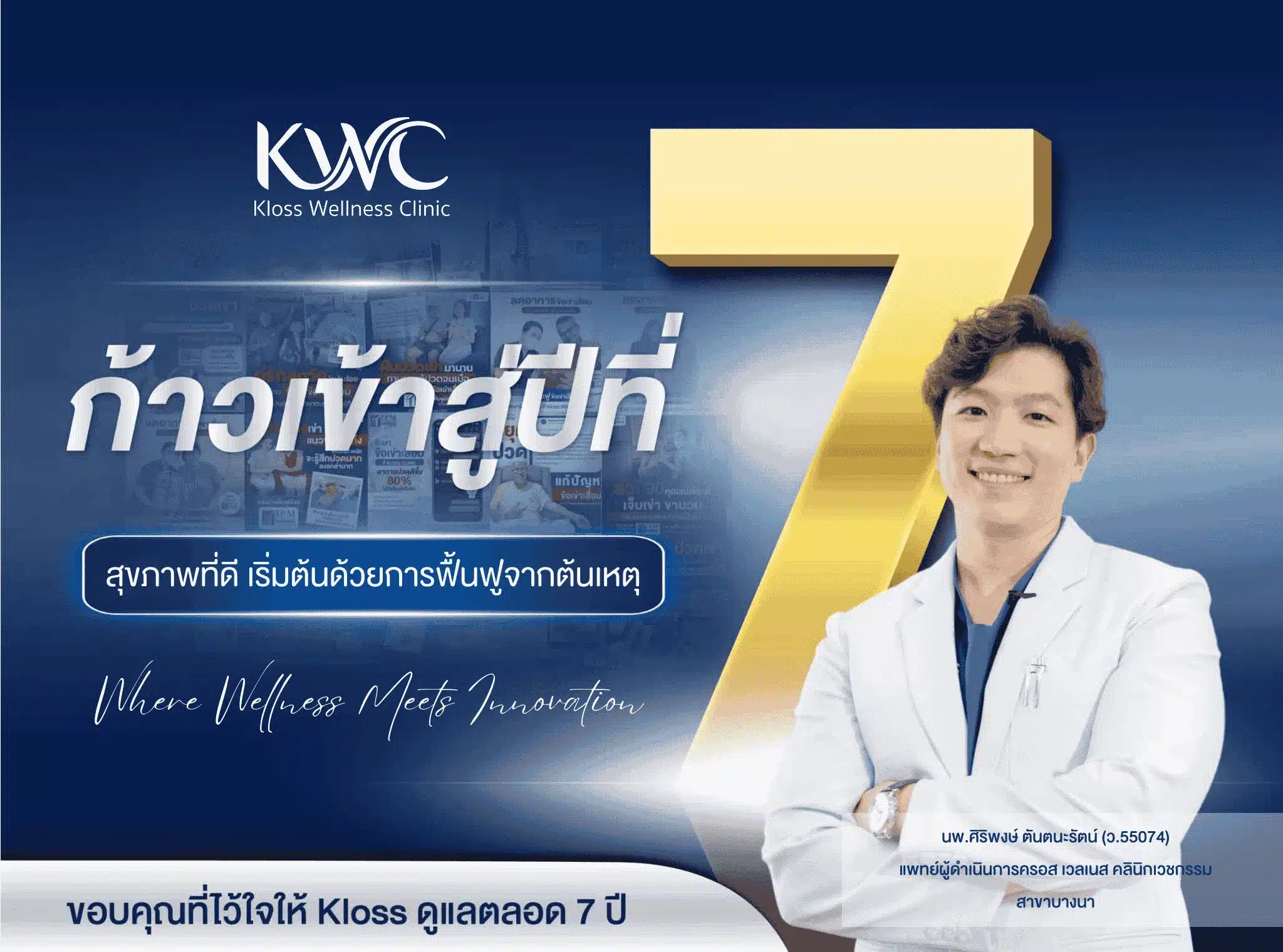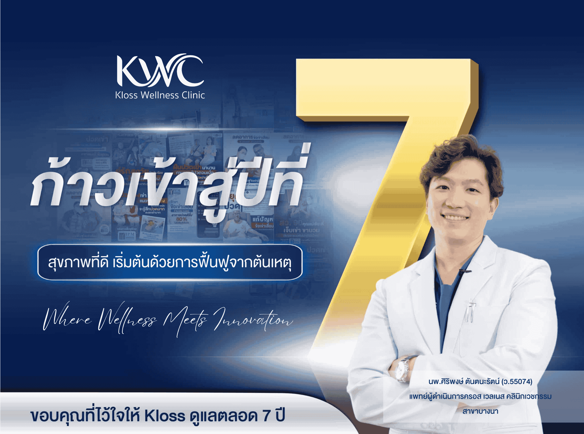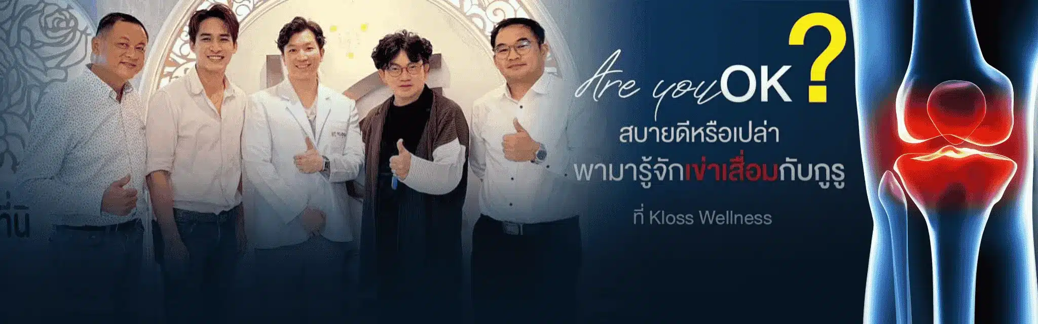 คืนช่วงเวลาแห่งความสุขให้กับคุณ ที่ KLOSS WELLNESS CLINIC คลินิกรักษาข้อเข่าเสื่อม กายภาพบำบัด ชำนาญเรื่องข้อ กระดูก และกล้ามเนื้อ เวชศาสตร์ป้องกันและ เวชศาสตร์ฟื้นฟู ด้วยเทคโนโลยี ที่ไม่ต้องพักฟื้นจากการผ่าตัดเป็นเวลานาน