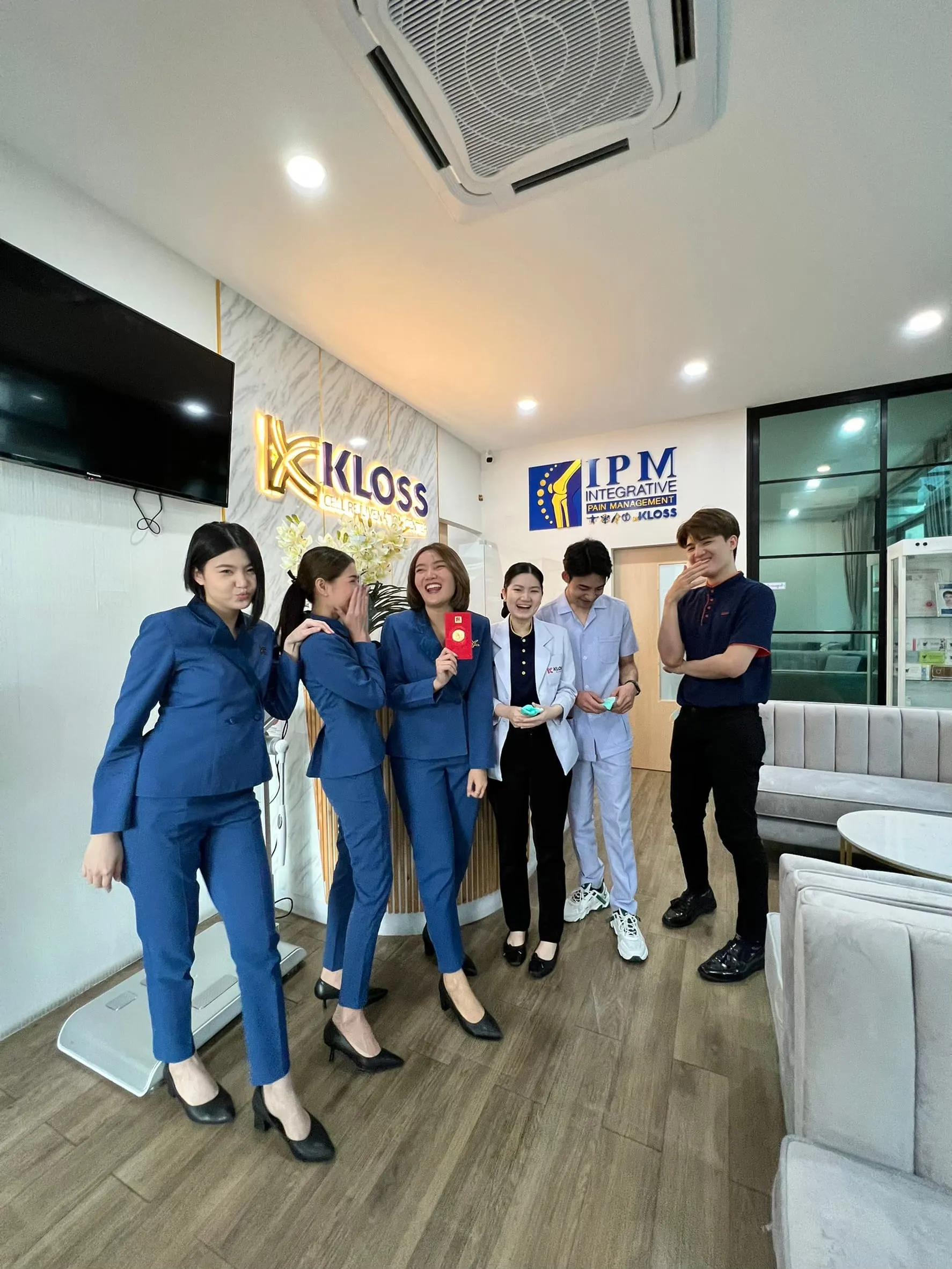 เจ้าหน้าที่คลินิกถ่ายภาพร่วมกัน พร้อมถือซองอั่งเปาในช่วงเทศกาลตรุษจีน